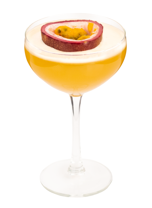 Combineer DubbelDrank Mango & Passievrucht met een scheutje limoensap, een klein beetje grenadine, een scheutje eiwit, en lekker veel ijs. Shake het geheel goed en versier je glas met een halve passievrucht voor het ultieme tropische gevoel.